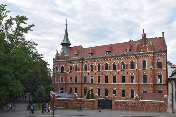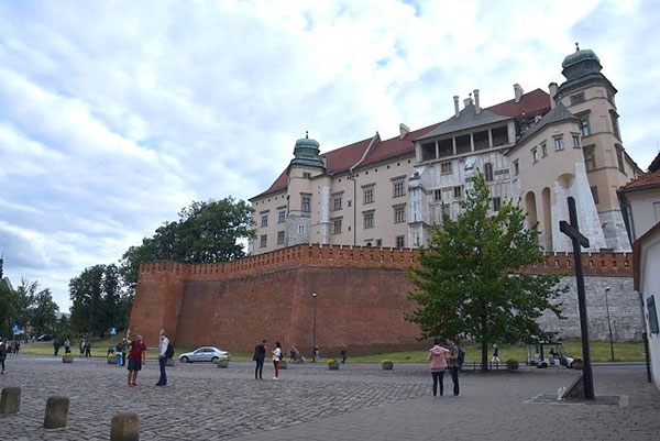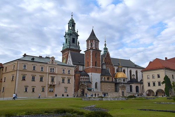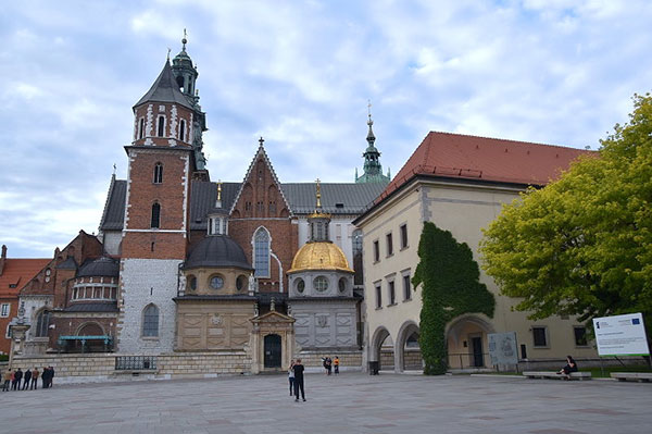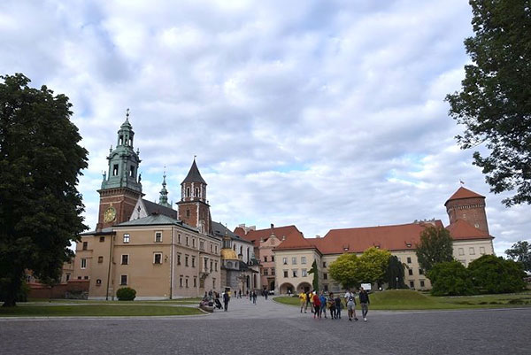 瓦維爾山中心建築群:左側有尖塔的是教堂區、右側紅屋頂的建築為城堡區。