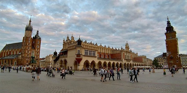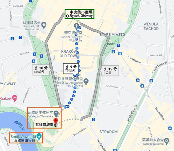 沿著皇家之路下瓦維爾山,再度走回中央集市廣場。這個角度把廣場上三棟代表性建築:聖母聖殿、紡織會館與市政廳鐘樓拍好拍滿!