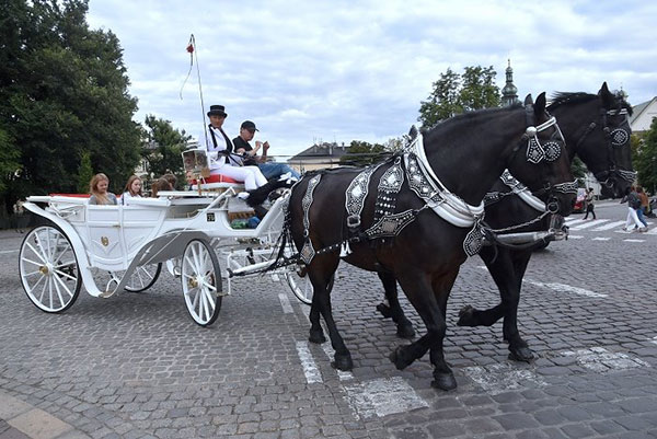 出租馬車(Fiacres)載著遊客從中央集市廣場的聖母聖殿出發,也是沿皇家之路這條著名觀光路線行駛而來。