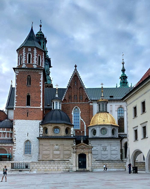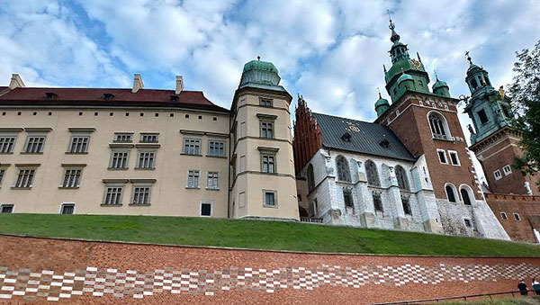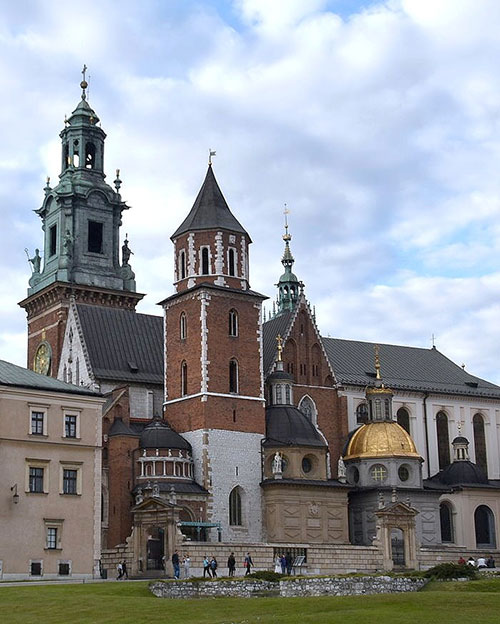 仰望瓦維爾主教座堂的鐘樓與塔樓。