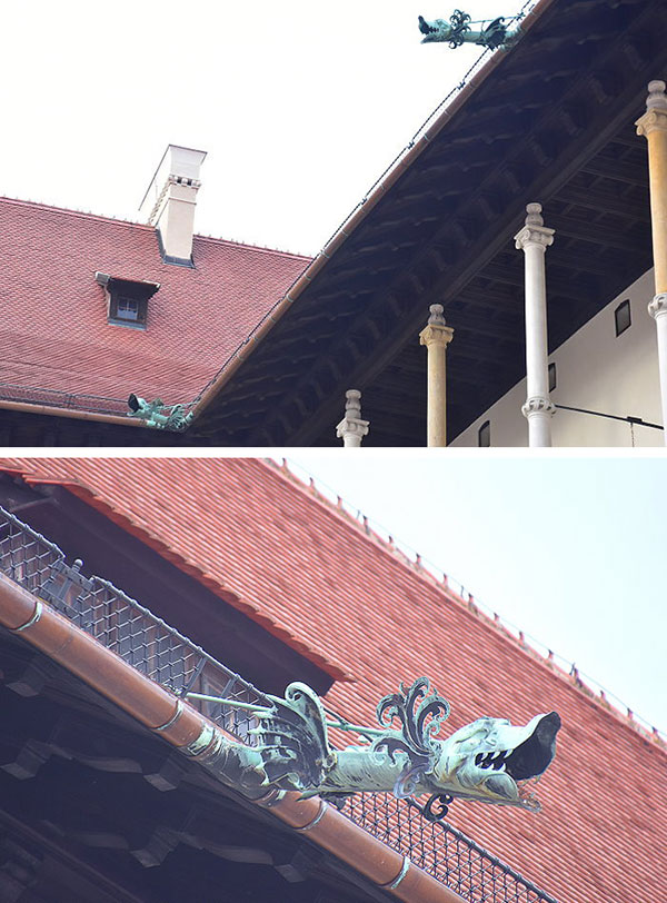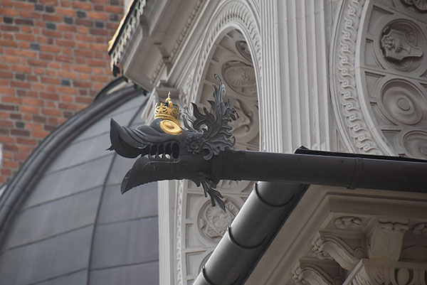 戴金冠的龍造型出水口。