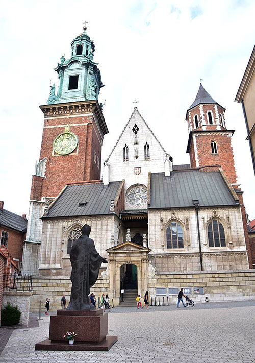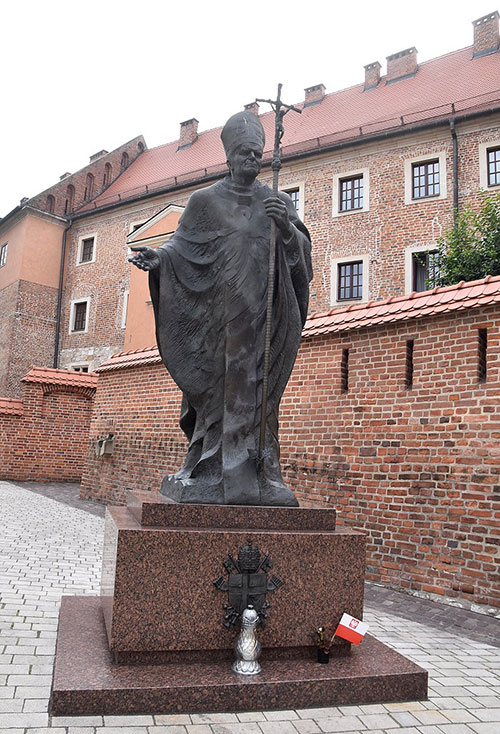 出生於波蘭南部的瓦多維采(Wadowice)的教宗聖若望保祿二世(St. Pope John Paul II,1920~2005)深受波蘭人民愛戴,很多地方都立有其紀念雕像。1946年11月2日,教宗若望保祿二世在教堂的地下室主持了他擔任神父後的第一場彌撒,1963年至1978年他就任克拉科夫教區大主教時負責瓦維爾主教座堂,2005年去世後也安葬在他的銅像對面的瓦維爾主教座堂的地下室。